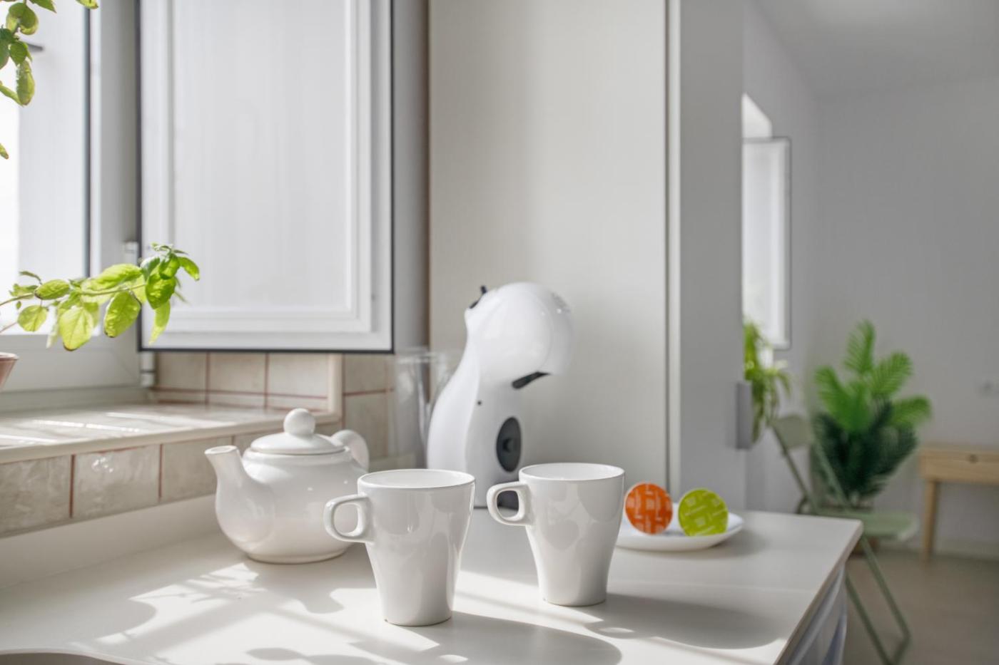 Este apartamento consta de 1 dormitorio, una sala de estar, una cocina totalmente equipada con horno y cafetera, y 1 baño con ducha y artículos de aseo gratuitos. Hay toallas y ropa de cama en el apartamento.