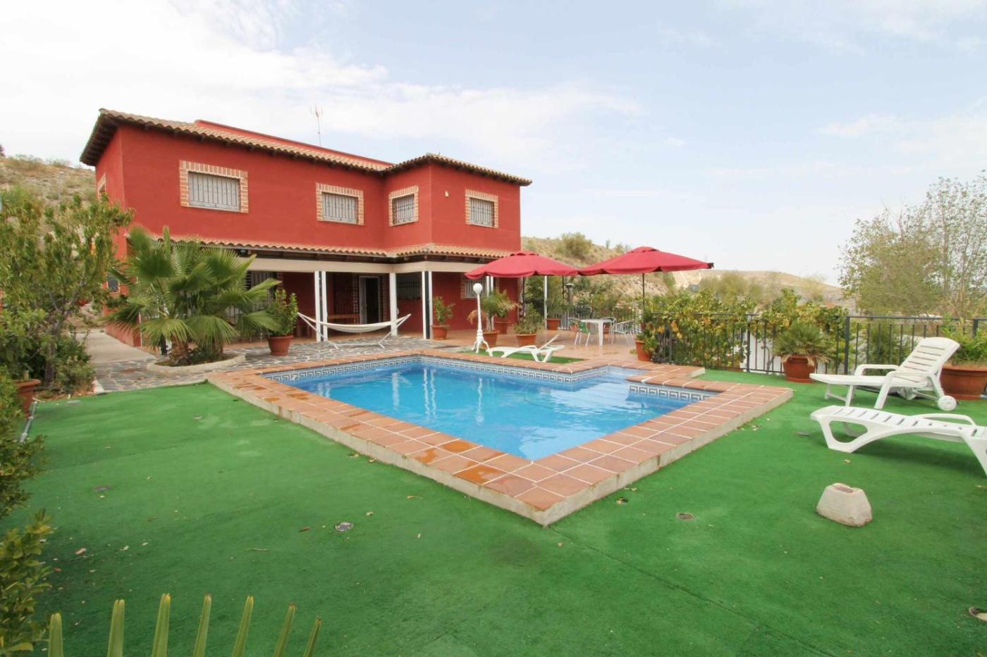 La villa cuenta con 5 dormitorios, 3 baños, ropa de cama, toallas, TV con canales vía satélite, zona de comedor, cocina totalmente equipada y terraza con vistas a la montaña.